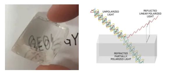 The left picture shows the birefringence phenomenon, and the right picture shows the polarization characteristics of light