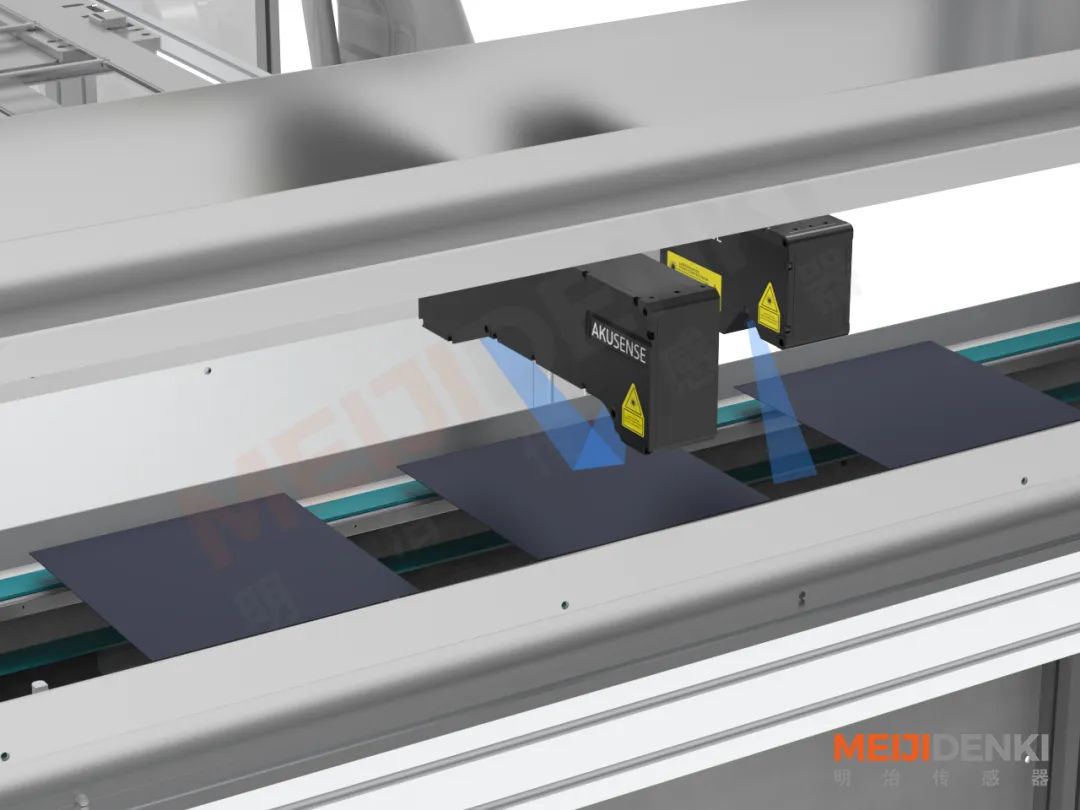During the transmission of photovoltaic sheets, sensors need to be used to detect whether there are multiple sheets of materials. When the products are stacked or empty, a corresponding signal needs to be given, and the mechanism will reject the stacked materials or empty materials without proceeding to the next step.